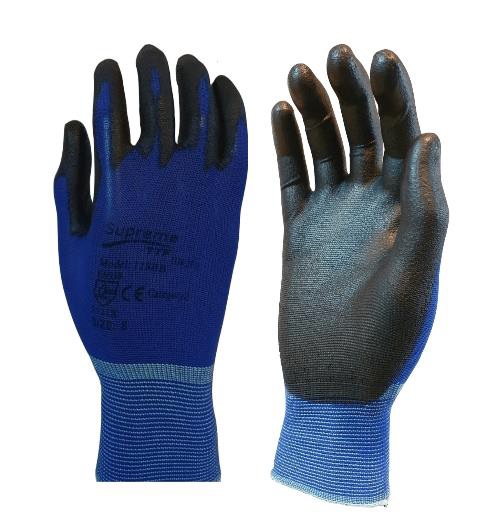 Description : 118BB is an 18 gauge Blue Liner glove with smooth Black PU